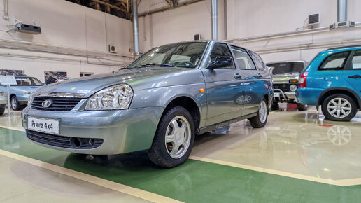 Перед нами уникальный заводской ходовой прототип автомобиля LADA Priora 4WD, который проходил дорожные испытания и который, скорее всего, является единственным подобным авто. Единственным полноприводным универсалом на базе LADA Priora, который разрабатывал завод. Так что это была за машина? И почему же она не добралась даже до мелкой серии? Узнаём прямо сейчас! Снаружи Внешне перед нами абсолютно обычный серийный универсал Лада Приора. Отличить полноприводную машину снаружи, можно разве что приглядевшись к тормозным механизмам задних колёс...