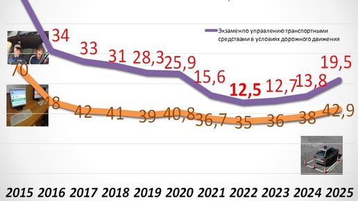 Здравствуйте. Снижение среднего процента сдачи с первого раза по РФ объясняется следующим образом. В 2014 году ППРФ 1097 введены требования к к средствам аудио- и видеорегистрации процесса проведения практических экзаменов, которые сделали обязательным их применение. В следующем году был принят приказ МВД Приказ N 995, утверждающий административный регламент по приему экзаменов, который обязал принимать экзамен только с использованием видеорегистраторов. И сдача экзаменов с первого раза стала резко снижаться по мере внедрения указанного оборудования...
