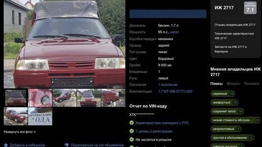 В Барнауле выставили ИЖ-2717 «как из капсулы»: что в объявлении?