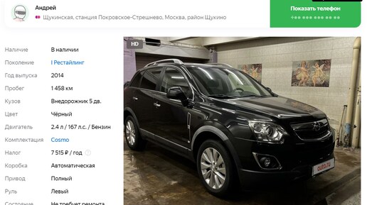 Частный продавец из Москвы выставил на продажу кроссовер Opel Antara 2014 года выпуска, но машина как новая: большую часть своей 10-летней жизни она простояла в гараже, пробег за все время составил 1458 км. «Машина не эксплуатировалась. Новый авто. Дополнительно: установлены защита картера и заднего моста, выполнен антикор», — рассказал продавец. Opel Antara — это немецкий клон хорошо известного в России Chevrolet Captiva. Агрегаты у них одинаковые, но Antara отличается оформлением передней части и интерьером, выполненным в стилистике автомобилей Opel того времени...