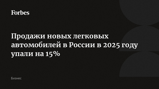 Продажи новых легковых автомобилей в России в 2025 году упали на 15%