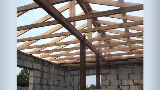 На нашем канале мы рассказываем, как мы построили небольшой, но крепкий и надежный дом из КББ за 300 тыс. руб. Начало стройки тут. Ранее мы рассказали про этапы: фундамент, стены, армопояс, центральные опоры и осевая балка, установка мауэрлата и конькового прогона, стропил, установка опор навеса. В прошлой публикации мы остановились на монтаже навеса (соединили стропила будущего навеса и столбы-опоры под навес). Теперь расскажем, как мы устанавливали потолочные балки перекрытия. Установка балок...