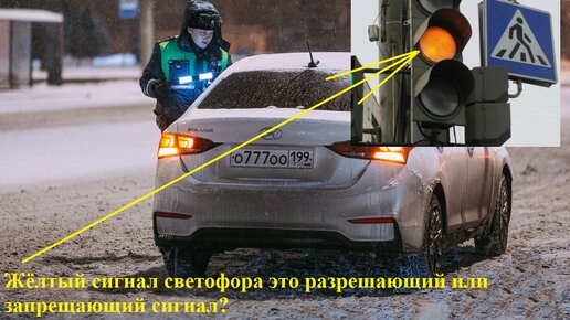 Здравствуйте, уважаемые читатели! Многие водители считают, что жёлтый сигнал светофора это разрешающий сигнал и на него можно проехать, такой вывод делают водители потому что по их мнению в ПДД РФ нет строгого запрета проезда на жёлтый сигнал светофора. Но к сожалению это не так и жёлтый сигнал светофора это запрещающий сигнал светофора и на него проезжать нельзя, чтобы всем было понятно разберём ситуацию на конкретном примере. Очень часто подъезжая к перекрёстку водитель видит, что зелёный сигнал...