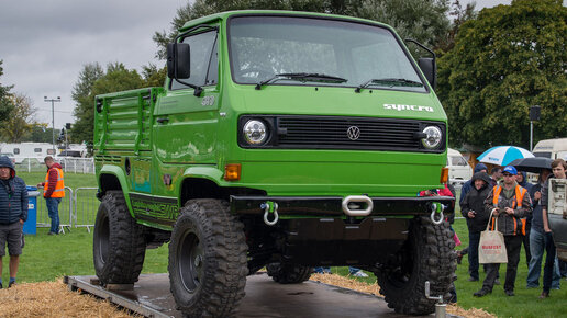 На недавно прошедшем в Великобритании близ города Мальверн мероприятии Busfest 2018 была показана очень необычная версия Volkswagen T3. Его привез Майкл Гиа (Michael Ghia), который уже много лет занимается доработками полноприводных микроавтобусов. Грузовичок получил длинное название Volkswagen T3 Syncro Lightweight SW. Начнем с того, что выглядит он крайне необычно, а всё из-за того, что использует кастомное шасси. Оси максимально смещены к краям рамы, что обеспечивает отличную геометрическую проходимость, ведь свесы практически отсутствуют...