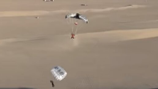 Прыжок через гигатскую дюну на мотоцикле с парашютом. Бейсджамп теперь еще опаснее!