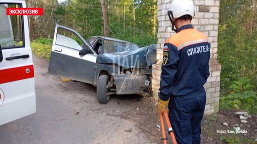 Нетрезвый водитель ВАЗ-2110 врезался в кирпичные ворота в Псковском районе