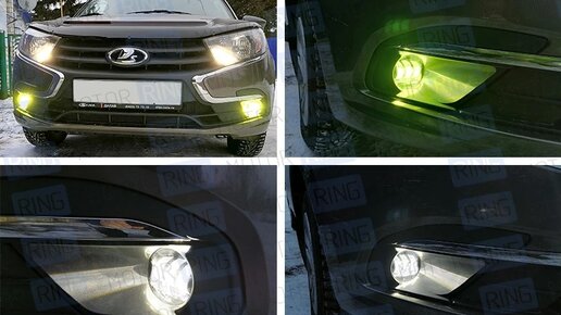 Установка диодных двухцветных ПТФ Sal-Man Lime на Гранта FL