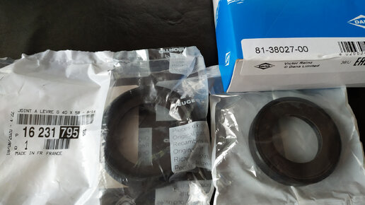 Установлены на левую сторону новый оригинальный с артикулом — 1623179580, а на правую — Victor Reinz 81-38027-00. Сальники нового образца с пыльником/юбкой, такие же с пыльником/юбкой стояли с завода. Выработки от них практически не было, только полоса светлого оттенка на металле вала . Правый поставил не оригинал потому что оригинал оказался во всю потеющим (в БЖ про КПП есть фото)...