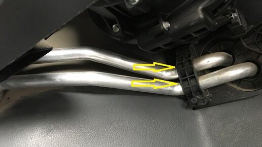 Известная болезнь Газели NEXT – перетирание от вибраций трубок радиатора отопителя в кронштейне крепления, показано стрелками. Если это уже произошло, трубки следует заменить на новые, а в места зажима в кронштейне можно подложить тонкие полоски резины, это предотвратит в будущем повторения неприятности. Компания МеталПарт предлагает трубки радиатора отопителя для замены поврежденных. Трубки сделаны в России, толщина алюминиевой трубки 1,6 мм, радиусы гиба точно соответствуют оригиналу. Следует помнить,...