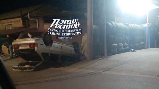 В Ростове-на-Дону автомобиль «ВАЗ-2114» перевернулся на дороге и залетел в шиномонтажку на крыше