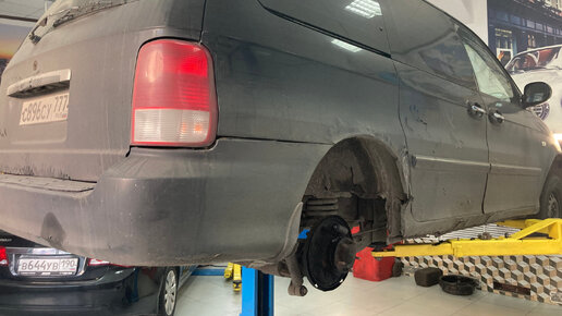 KIA  CARNIVAL черный № С896СУ777 VIN KNEUP752226246715 2002г.в. Автомобиль приехал с течью тормозной жидкости При диагностики выявлена течь заднего правого тормозного цилиндра, также самой жидкостью разъело барабанные колодки и феродо отпало от металлической основы...