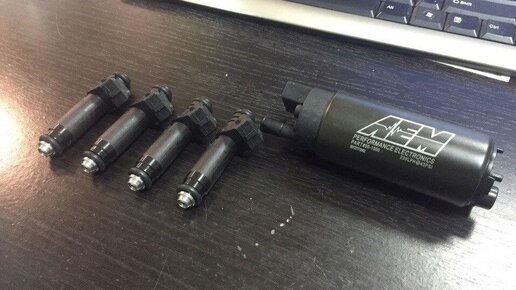 Элементы топливной системы будут меняться, это даже не обсуждалось. Форсунки производительностью 470 сс и штатный насос заменим на форсунки 630сс и насос AEM производительностью 320 л/ч...