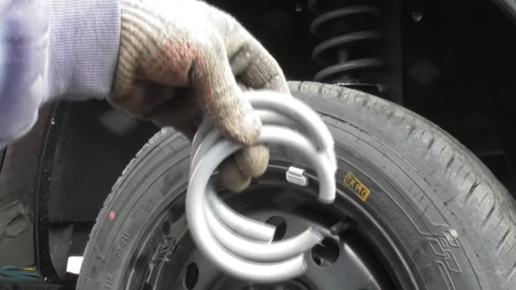 В этом обзоре покажу и расскажу, как будет просаживаться Лада Гранта после срезки одного витка, потом двух и трех задних пружин подвески. Больше 4-5 витков уже никто не пилит. Автомобиль совсем новый, проехал 300-400 км. Я просто кладу линейку и подставляю рулетку. Показывает около 9 см. Теперь срезаю один виток пружины и показываю, насколько машина просядет. При срезке первого витка надо понимать, что большой просадки не будет, потому что ее изгиб небольшой. Первый виток срезан. Автомобиль опускаю с домкрата...