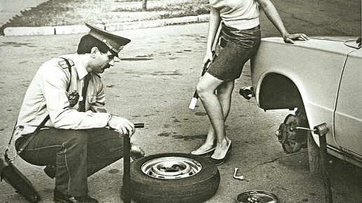Как вообще люди ездили в те времена? Сейчас пожаловаться любим – то дороги плохо почистили, то реагенты не те используют. А тогда выезжать зимой на дорогу было равносильно участию в каком-то экстремальном ралли. Причём участвовали в этом "ралли" поголовно все – от водителей грузовиков до обладателей личных Жигулей. Потому что зимней резины в привычном понимании этого слова в СССР попросту не существовало. Вот вообще. И приходилось выкручиваться, как могли. Дороги чистили выборочно. В Москве, Ленинграде – да, старались убирать снег регулярно...