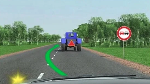 Всем привет. У нас на разборе в очередной раз задачка с подвохом. Я думаю, опытные водители уже догадались, в чём он заключается. Мы видим знак, запрещающий обгон транспортных средств, прерывистую линию разметки и впереди едущий трактор. По такому описанию можно смело сказать, что обгон разрешён, НО присмотритесь на трактор. На нём стоит знак, указывающий на то, что это тихоходное транспортное средство. А что сказано о тихоходных ТС в описании знака "обгон запрещён"? Давайте его найдем: 3.20 "Обгон запрещен"...