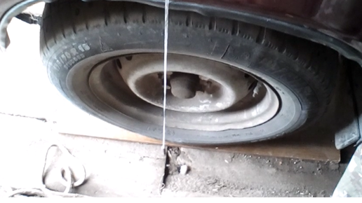Я заметил что покрышка с левой стороны стерлась на переднем левом колесе и я подумал что нужно сделать развал схождение на ВАЗ 2107 но прежде чем ехать на станцию я решил проверить и по возможности отрегулировать развал схождение своими руками дедовским методом с помощью веревки и отвеса...