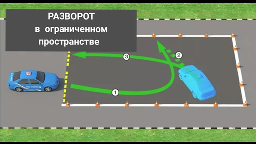 Ученик может столкнуться на экзамене с необходимостью выполнить разворот в ограниченном пространстве. Упражнение является одним из самых легких экзаменационных заданий.