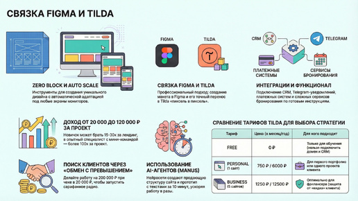 Tilda Publishing — это самый популярный конструктор сайтов в странах СНГ, занимающий около 90% рынка подобных решений. Главное преимущество для новичка: здесь не нужно знать программный код. Tilda закрывает 95% задач малого и среднего бизнеса, позволяя создавать лендинги, многостраничные сайты и небольшие интернет-магазины. Если вы хотите освоить удаленную профессию и выйти на доход от 15–20 тысяч рублей за первый заказ, следуйте этому плану. Шаг 1. Регистрация и изучение инструментария Прежде чем искать клиентов, нужно разобраться в базе...