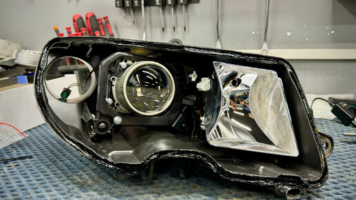 Всех приветствую! Сегодня у нас в студии Skoda Superb 2 поколения. Штатно на автомобиле установлены ксеноновые фары, света которых не хватает для комфортной езды. Пришло время обновить начинку фар и установить вместо штатных линз современные светодиодные модули. Попутно освежим стекла и заменим лампы в ПТФ. Состояние фар до начала работ: Демонтируем бампер и фары. Снимаем с них все навесное и отправляем в печь. Герметик у нас в данном случае условно неразборный, используем для разбора специальную жидкость и инструменты...