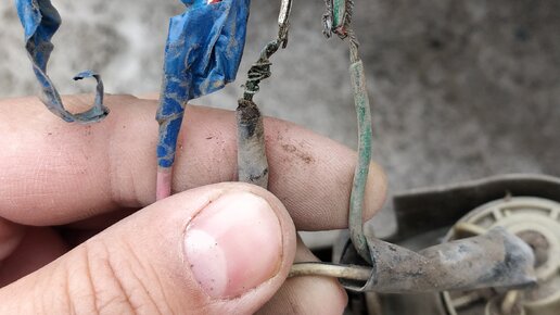 Сразу после покупки заметил, что правый "поворотник" просто разрывается, при движении он сильно раздражал. Причём мигание сигнала левого поворота в полном порядке. Надо исправлять! Оказалось, что у меня не только мигает правый поворот, а ещё и не работает его повторитель. Начал его разбирать, снял, на лампочке никакого хромового оттенка, не сгорела. Когда же внимательно посмотрел на косу проводов, то просто ужаснулся. Автомобиль 1993 года, представьте, что могло произойти с проводами за такой промежуток времени? Они просто рассыпались, когда-то они были мягкие, со временем сильно загрубели...