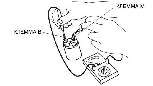 2. Подключите стартер, аккумулятор и тестер, как показано на рисунке...