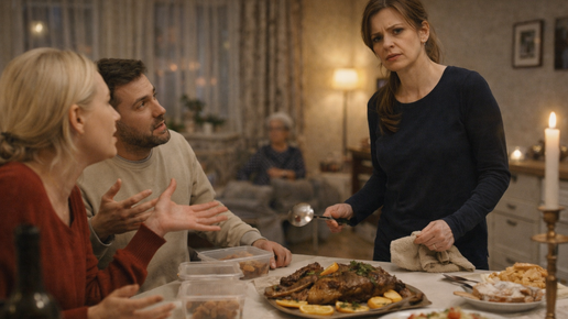 — Мы не наелись, что осталось — с собой нам заверните! — потребовали наглые гости так уверенно, будто пришли не в мой дом, а в столовую по корпоративной скидке. И самое смешное: сказали это не в конце вечера, когда стол уже пустой, люди устали и всем хочется разойтись. Нет. Они сказали это… в разгар праздника. В тот момент, когда на столе ещё стояли горячие тарелки, салаты даже не успели “устояться”, а у меня в духовке допекалась утка. Я замерла с половником в руке. Пахло жареным луком, яблоками...