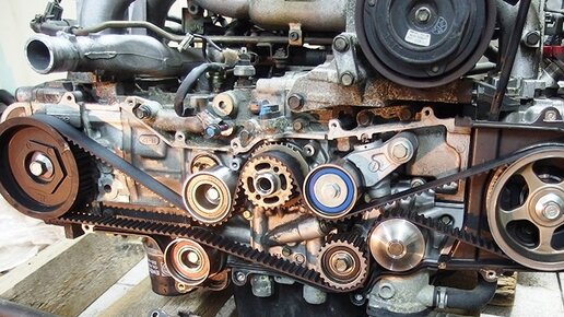 Вообще Subaru один из самых удобных автомобилей в плане компоновки двигателя и коробки. Такое продольное расположение агрегатов, и сама особенность оппозитного мотора позволяет добраться до любых узлов очень быстро. В частности всё навесное оборудование находится сверху, стартер также снимается легко. Демонтаж мотора или коробки занимает мало времени. Вот и в плане замены ремня ГРМ или цепи ГРМ, Subaru предоставляет кучу места для доступа. Сегодня будем говорить про замену ремня на четырёхвальных моторах объёмом 2-2,5 литра...
