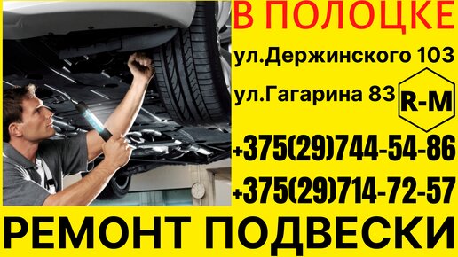 РМ Автосервис5 лет назадПодписатьсяРЕМОНТ ПОДВЕСКИ ПОЛОЦКРЕМОНТ ПОДВЕСКИ АВТОМОБИЛЯ В ПОЛОЦКЕ. АВТОСЕРВИС В ПОЛОЦКЕ УЛ.ДЕРЖИНСКОГО 103 УЛ.ГАГАРИНА 83 +375 29 744-54-86