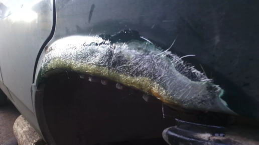 Ремонт сгнившего переднего крыла стекловолокном и шпаклёвкой