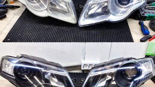 Добрый день, друзья! Владелец авто - Наш постоянный клиент. Полтора года назад устанавливал у нас линзы в фары 💪🏻 В этот раз причиной обращения к нам послужило ДТП 😔 - было принято решение переставить внутренности разбитой фары в другую фару б/у ➕ Дополнительные работы: - пайка стекла - покраска масок в черный цвет [ Всегда с Вами на связи ]