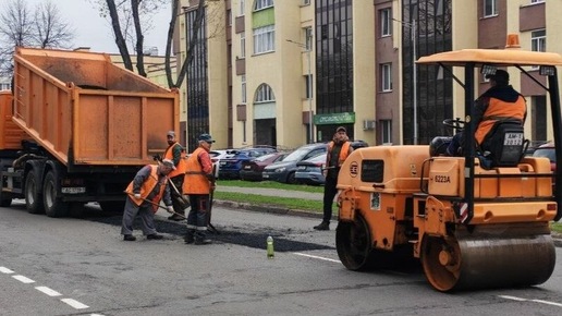 Ремонт на Революционной в Пинске: дорожники латают ямы на проезжей части