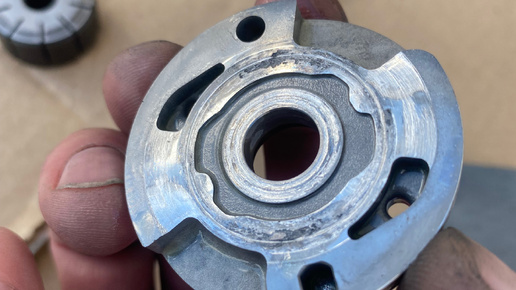 Всем привет, такая история. Проехал по трассе 500 км и стал туго поворачиваться руль, при этом при повороте гудел и трещал. Ну заказать новый насос не так и сложно, но хороший аналог стоит в районе 50000р. Я снял насос с машины, это не так и сложно, 3 болта на бачке и три болта крепят сам насос к двигателю. Далее вскрываю заднюю крышку насоса и вынимаю внутренности. И вижу износ детали где находятся лепестки, беру наждачку, ложу на калиброваную ровную плиту и круговыми движениями...