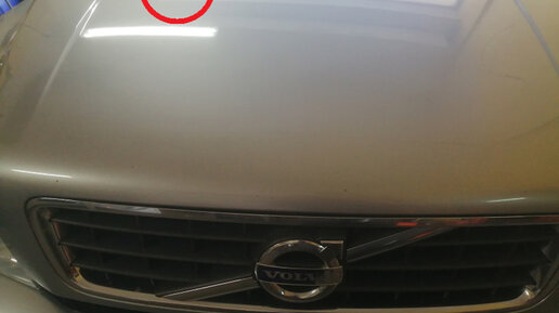 Вольво. Ремонт вмятины на капоте без покраски.