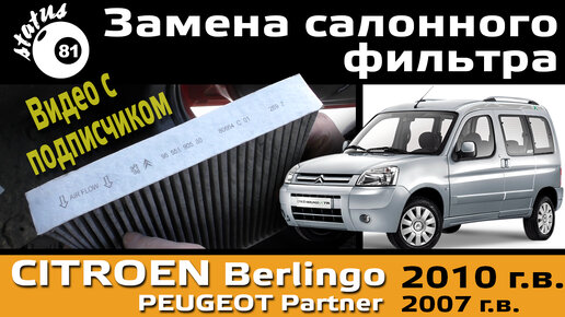 Замена салонного фильтра Ситроен Берлинго 2010 / Замена салонного фильтра Пежо Партнер 2007