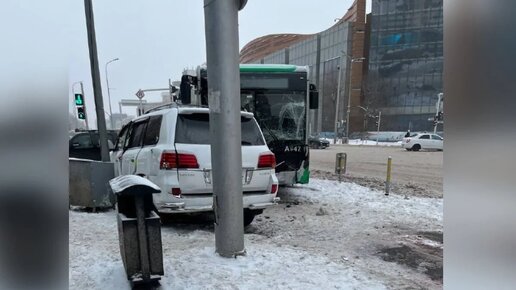 Дорожный знак влетел в магазин после ДТП с Lexus и автобусом в Астане