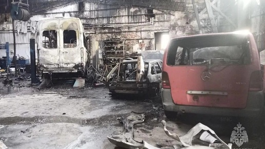 Поджог автосервиса в Чебоксарах: огонь уничтожил два микроавтобуса и легковой автомобиль