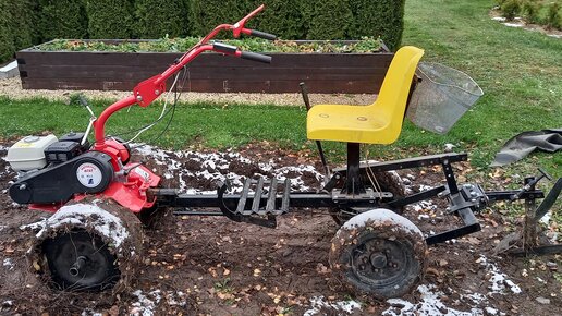 Мотоблок Агат. Попытка вспахать, "отвалить" и последствия "покатушек" на больших грунтозацепах по снегу.