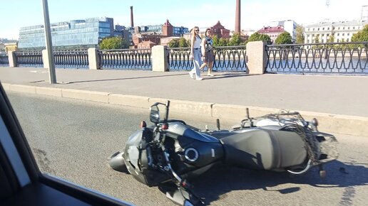 Прилегший набок мотоцикл занял полосу на Выборгской набережной