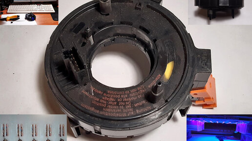 Попался недавно в ремонт подрулевой шлеф с ВАГа, хитро глючил и не могли отловить. Плавающая неисправность был в цепи подушки водителя, то виделась то нет. Пару недель работает, а потом исчезает и выкидывает ошибку. Понятно что всю проводку прозвонили и не раз, все ОК. Оказалось дело в шлейфе подрулевом, прозвонка не выявляет эту неисправность. Решил показать, может кто столкнется с таким. Снимаем подрулевой шлейф и на операционный стол его. Разбирается он элементарно. Сначала отщелкивается и снимается внутреннее кольцо, защелки №1, а потом снимается крышка, защелки №2...