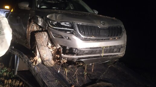 Всем привет. Сегодня в ремонте Шкода Кодиак 2018 года выпуска. Двигаясь по малознакомой дороге в вечернее время, водитель пошел на обгон. Стоило ему выехать на встречную полосу и поравняться с обгоняемым авто, заметил, что дорога уходит резко налево. При этом знаков, обозначающих изгиб дороги, не имелось. Побоявшись ухода автомобиля в юз, водитель принял решение не вертеть рулём и уходить в кювет. Снеся правым боком заградительный столбик, авто вылетает с дороги, сминает по дороге кусты (повезло, что не было деревьев) и в 40 метрах от дороги передними колёса вязнет в мягком грунте...
