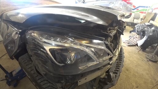 Всем привет, сегодня в ремонте алюминиевый w212. При выезде со второстепенной дороги на главную, на которой в это время шел ремонт, хозяин мерса растерялся при виде временной разметки и не пропустил машину. В результате слегка притерло морду: разбита фара и бампер, погнуло фарой переднюю часть правого крыла и погнуло и слегка порвало капот в районе все той же фары. По логике, надо подрихтовать правое подфарное очко, поменять все вышеперечисленные элементы и отправить в малярку. Однако есть нюанс – цена зч...