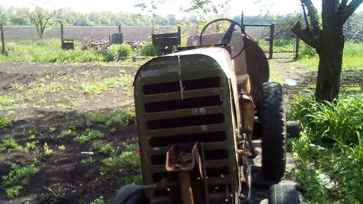 Собирая трактор из подручных запчастей, из находящегося на разборке, для передней ходовки, была только передняя балка с ГАЗ 53. Она достаточно мощная, чтобы выдержать предстоящие нагрузки. Подогнали под раму трактора (просто разрезали ее пополам, укоротили при помощи болгарки и сварили обратно, добавив пару ребер жесткости). Вопрос о резите и вообще колесах стал ребром. По задумке на передке должны были стоять передние колеса на 13 дюймов, но как их закрепить на газоновские ступицы, пока было неизвестно...