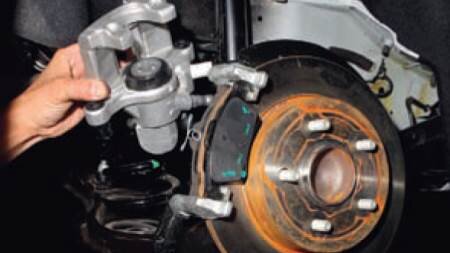 Своевременная замена задних колодок Форд Фокус 2 гарантия вашей безопасности. Тормозной механизм задних колес дисковый, с плавающим суппортом, включающим в себя однопоршневой рабочий цилиндр. Конструкция заднего тормозного цилиндра Ford Focus довольно сложная, ведь объединяет в себе обычный гидроцилиндр (похожий по конструкции с передним тормозным цилиндром) и механизм стояночного тормоза.