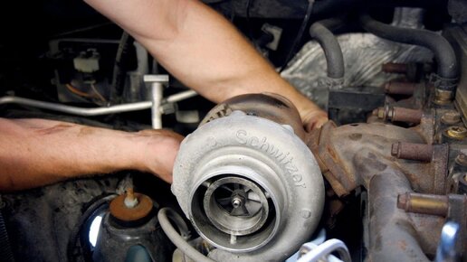 Турбокомпрессор состоит из трех узлов. Горячая улитка (чугунная), в которой помещается турбина. Холодная улитка, в ней расположен компрессор. И средняя часть — корпус, там располагается вал вращения турбины с подшипниками. Средняя часть наиболее подвержена износу. Берём за вал рукой и пробуем перемещать его в осевом и радиальном направлении. Ощущаем значительное перемещение вала. Это означает, что изношены подшипники, резиновые уплотнения, крыльчатка задевает за корпус. Увеличен свободный люфт вала в подшипниках...