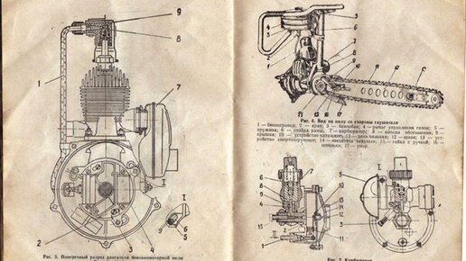 Устройство бензопилы. Для быстрого обслуживания и эффективного ремонта бензопилы Дружба 4 следует знать ее устройство. Подробно почитать про устройство и конструктивные особенности можно в инструкции по эксплуатации. В нем же можно найти советы и рекомендации по ремонту и устранению неисправностей своими руками. Для наглядного ознакомления рекомендуем посмотреть фото ниже, на нем указаны все основные узлы, пронумерованы и подписаны. Обратите внимание, в нижнем правом углу находится схема устройства карбюратора, которая состоит всего из 15 деталей...