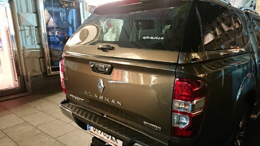 Буквально не далее, как пару дней назад, прогуливаясь по городу, заметил весьма интересный автомобиль. Внедорожник, пикап с крытым кунгом. Подхожу ближе — сзади красуется надпись "Renault". "Так вроде же в модельном ряду Рено для России нет пикапов?" – сразу промелькивает в моей голове. Делаю несколько фото и иду домой – писать и рассказывать вам о новом Renault Alaskan, которого в России нет и не будет. Кстати, заранее прошу прощения за качество фото: фотографировал телефоном вечером, поэтому качество соответствующее...