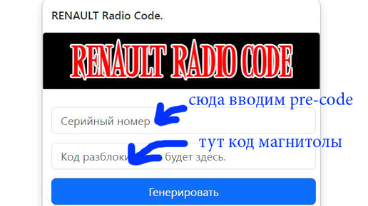 Код магнитолы Рено Сандеро. Как разблокировать магнитолу самостоятельно ? Ссылка на бесплатный калькулятор или запрос кода в комменатриях.