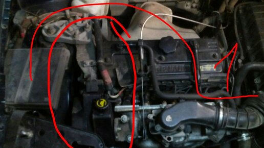 При покупке я уточнил у бывшего хозяина когда он менял ремень ГРМ. На что он ответил - машина у него 4 года и он его не менял, а только один раз подтянул. Я решил его заменить от греха по дальше! Находится он в передней части двигателя в обведенной зоне. Деталь №1 надо убрать для удобного доступа! Получится освободить вот столько полезного места для ремонта и под руками не будут мешаться лишние детали. Затем необходимо снять ремни. Верхний клиновый и нижний ручейковый. После того как сняли ремни можно откручивать три болта держащие верхнюю крышку...