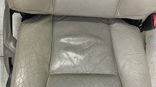 Приехали максимально потресканные сидения от старенького Volvo. Клиент не хотел перешивать, нужно было восстановить все без перешива. Попробуем выровнять кожу утюжком и шпаклевкой. Чистим сидения хорошо и несколько раз. Наносим пену на щетку и проходимся круговыми движениями по поверхности кожи. Грязную пену убираем микрофиброй. 2. Растворителем постараемся убрать старую краску, чтобы увидеть насколько глубокие трещины в коже...