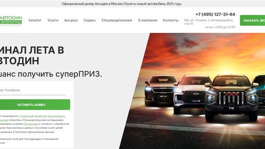 Автодин Зеленоград — это автосалон, в котором продаются китайские автомобили без пробега. На владельца есть иски о защите прав потребителей. В сети мы обнаружили негативные отзывы о нем. В автосалоне в МО, рп.Ржавки, 2-ои микрорайоне стр 14 можно купить новый автомобиль китайского бренда. Всего представлено 6 марок: Geely, Belgee, Chery, JAC, KNEWSTAR и TENET. Является официальным дилером Belgee, Chery, JAC и TENET. Официальное дилерство по двум оставшимся маркам подтвердить не удалось. Мы заметили, что цены, указанные на сайте АЦ Автоdин Зеленоград значительно ниже, чем на сайте производителя...